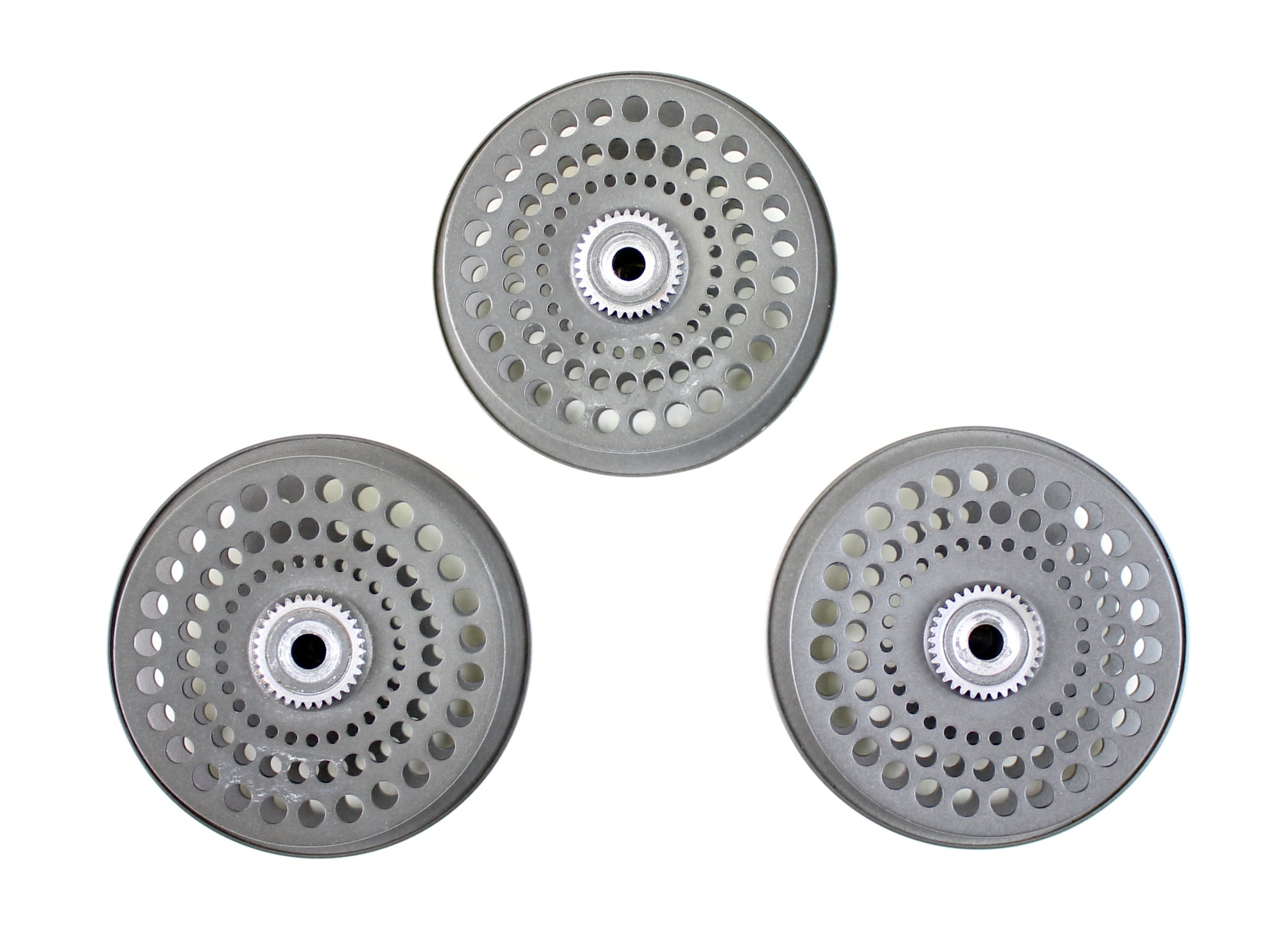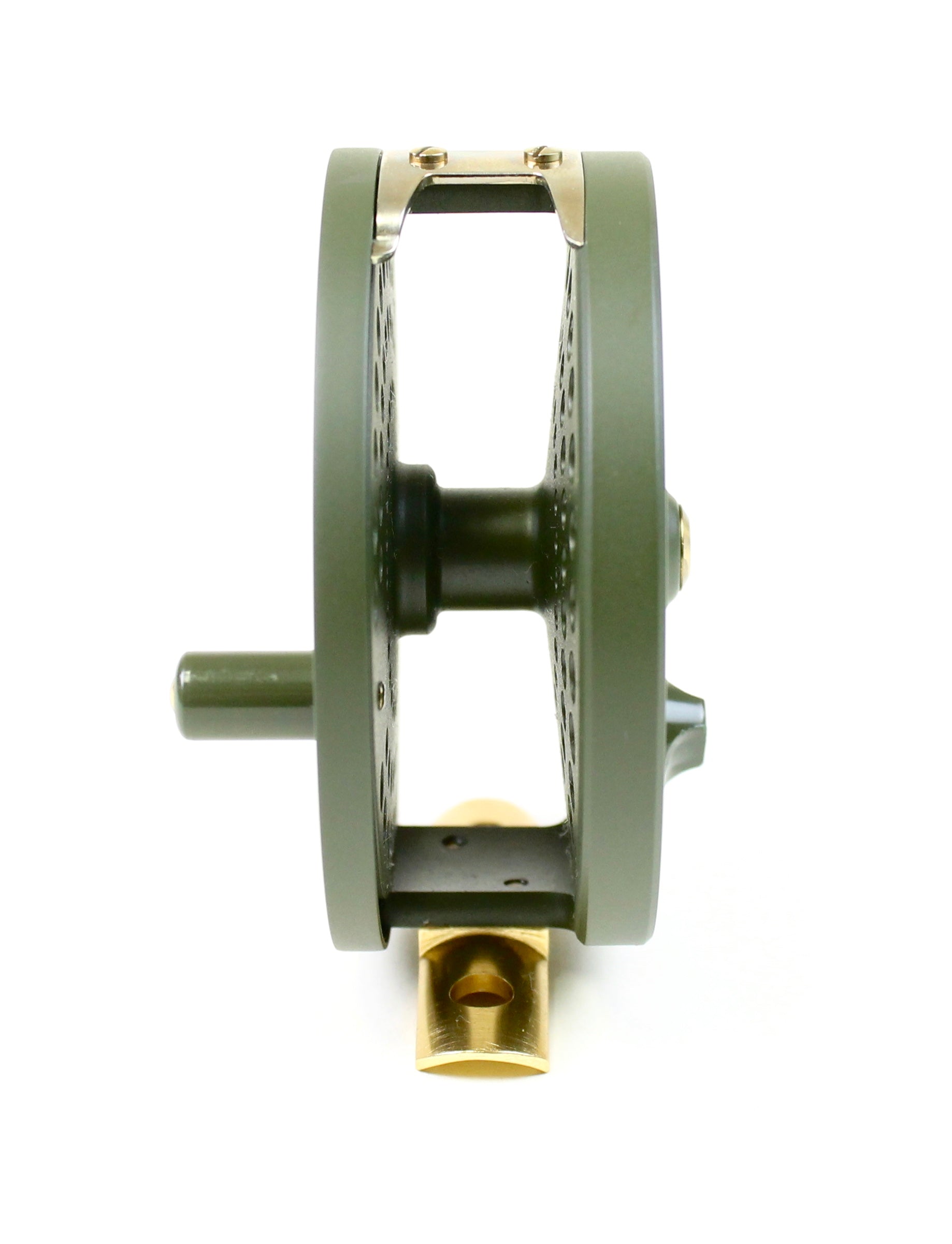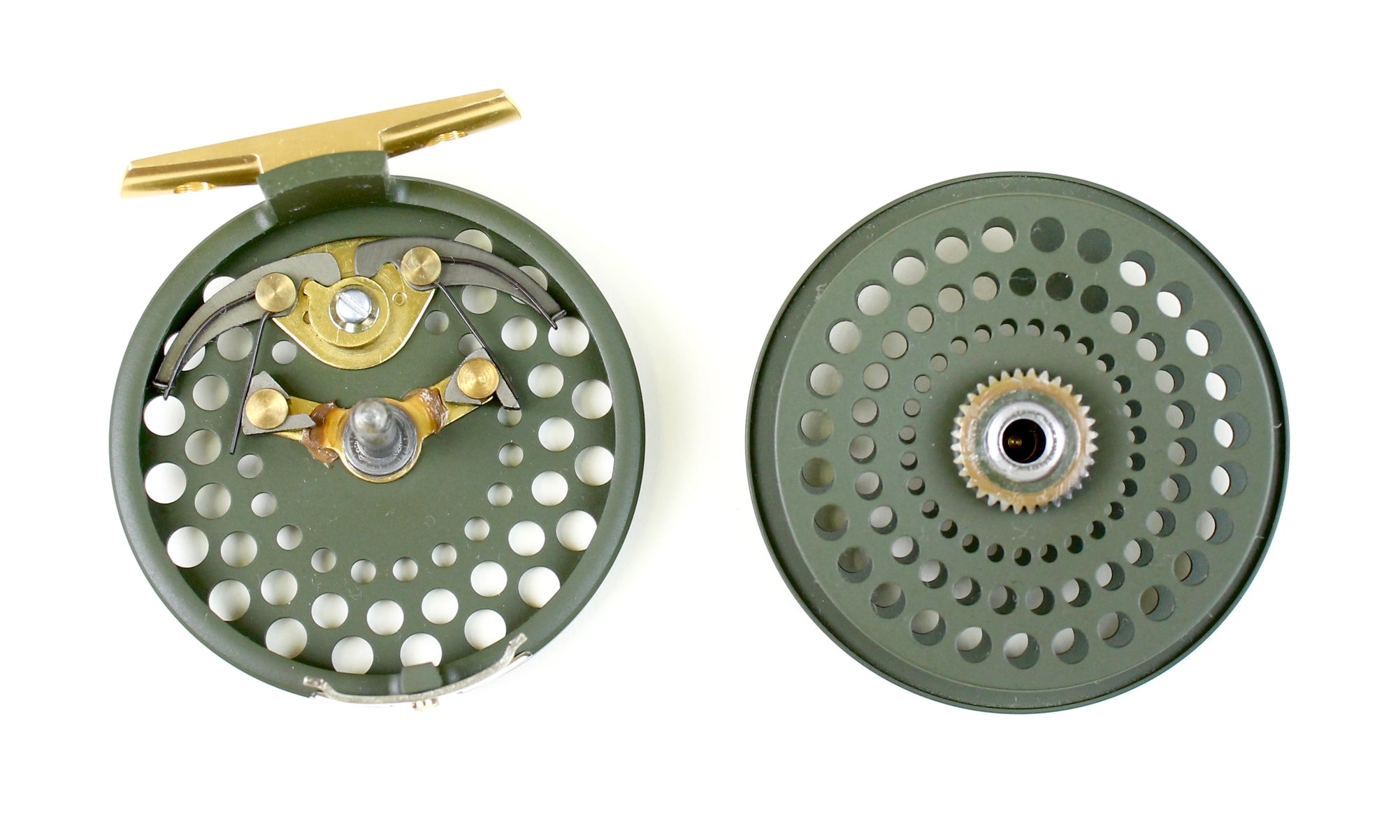 History of the CFO Reel - 1992 - "Machined reels are introduced this year, and were available in sizes II, 123, III and IV. These reels feature a “no rivet” design. The rivets that were used to hold the drag pawls in place are removed; the pawls are now internally affixed to a reinforced internal plate. The old cast reels are still offered this year in sizes 123, III and IV. These still had rivets through the back. The new reels were manufactured in such a way as to allow interchangeability of spools between machined and cast CFOs. However, some experimentation may be necessary before a proper fit can be attained. An “Introductory Edition CFO III” was also offered this year. The reel was identical to the new, machined reel except for the finish. The Introductory CFO had an olive finish (slightly different from later disc-drag models) and featured gold anodized aluminum hardware. The line guard on this model was made from nickel silver." - History of the Orvis CFO , Mike Daly